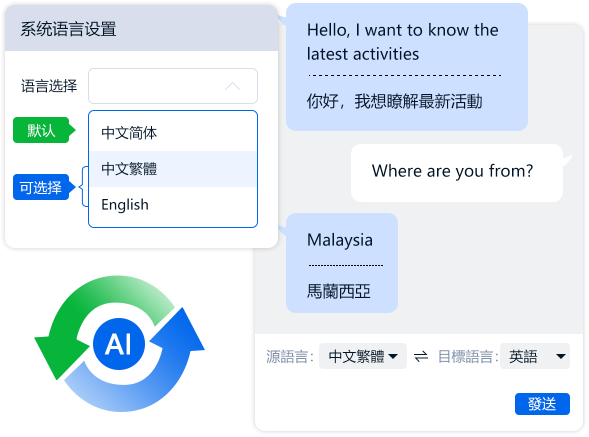 LINE在线客服系统,包括中文简体、中文繁体、英语版本。同时,支持自动翻译功能,如日/韩/越南/马来/印度/法/德/葡萄牙等多国语言。
